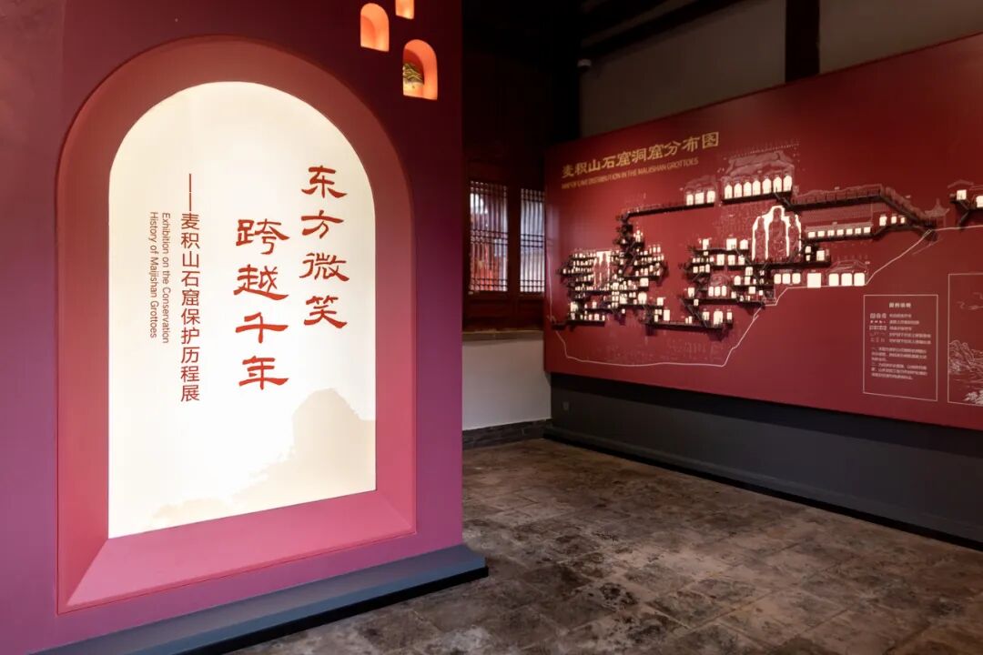 金秋九月,天水市麦积山层林初染,崖壁间错落镶嵌的石窟群古朴而厚重。 在这座被誉为“东方雕塑艺术陈列馆”的文化遗产地,“东方微笑 跨越千年——麦积山石窟保护历程展”揭开神秘面纱! 麦积山石窟 麦积山石窟坐落于天水市区东南约30公里的群山之中,因其“形如农家积麦之状”而得名。它始建于十六国后秦时期,至今已历经1600余年,与敦煌莫高窟、大同云冈石窟、洛阳龙门石窟并称“中国四大石窟”。现存洞窟221个、各类造像3938件、壁画1000余平方米,素有“东方雕塑陈列馆”的美誉。 作为“丝绸之路:长安——天山廊道的路网”的组成部分,麦积山石窟于2014年被列入《世界遗产名录》。 (视频号:新甘肃客户端) 9月11日,由国家文物局、中共甘肃省委宣传部指导,甘肃省文化和旅游厅、甘肃省文物局、天水市人民政府主办,敦煌研究院承办,金螳螂文化设计的常设展“东方微笑 跨越千年——麦积山石窟保护历程展”在甘肃省天水市麦积山石窟瑞应寺盛大开展。 展览以“麦积山石窟保护历程”为主线,以“东方微笑”艺术符号为灵魂,设置“东方微笑”“跨越千年”“潜心护宝”“共同守护”四个单元,通过历史照片、三维影像、沉浸式体验等多种形式,融合麦积山石窟自然之景,多层次呈现石窟的营造历史与艺术价值,立体化展示麦积山石窟保护历程及研究成果。 从古代工匠打造“东方微笑”的匠心, 到当代人守护这份珍贵遗产的坚守, 每一次展览都是一次文化传承的接力。 在与“千年微笑”的对视中, 读懂石窟寺的历史价值与文化意义, 感受麦积山石窟跨越千年的美丽!