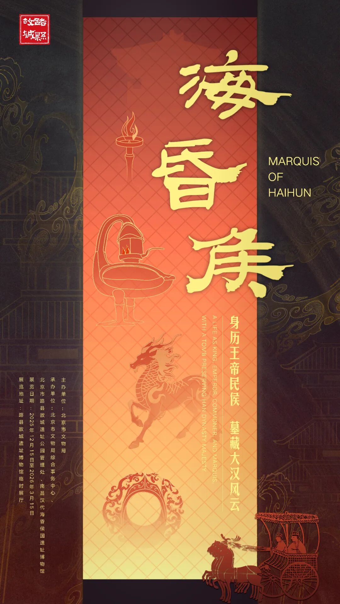 展览由北京市文物局主办,北京市文物局综合事务中心、北京市路县故城遗址公园管理处与南昌汉代海昏侯国遗址博物馆联合承办,金螳螂文化设计实施。
